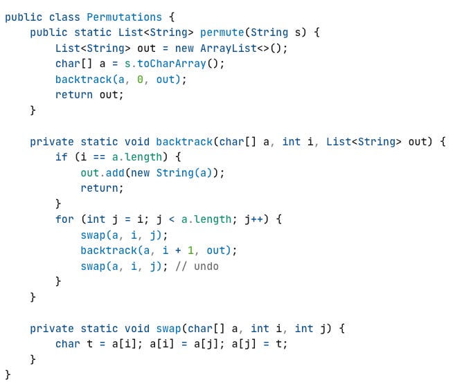 If you have a string of length 10 and try to print every permutation, that’s already several million operations and increasing n by just 1 doubles or triples the workload instantly.