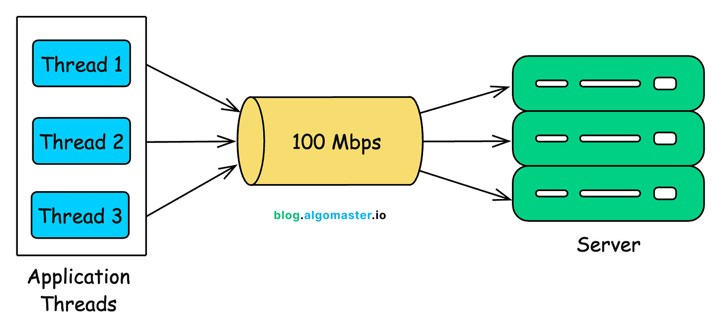 Think of bandwidth as the width of the pipe. It belongs to the link, not to a single request or user.