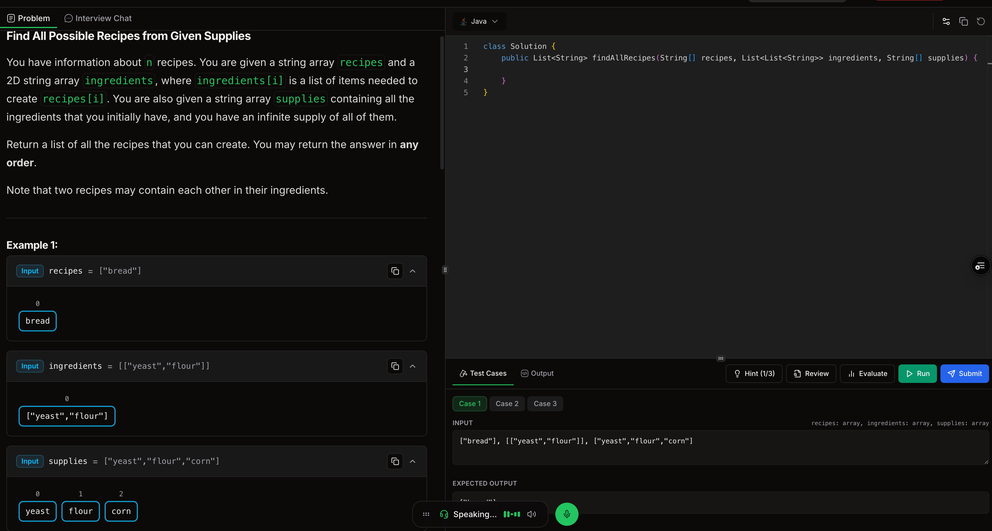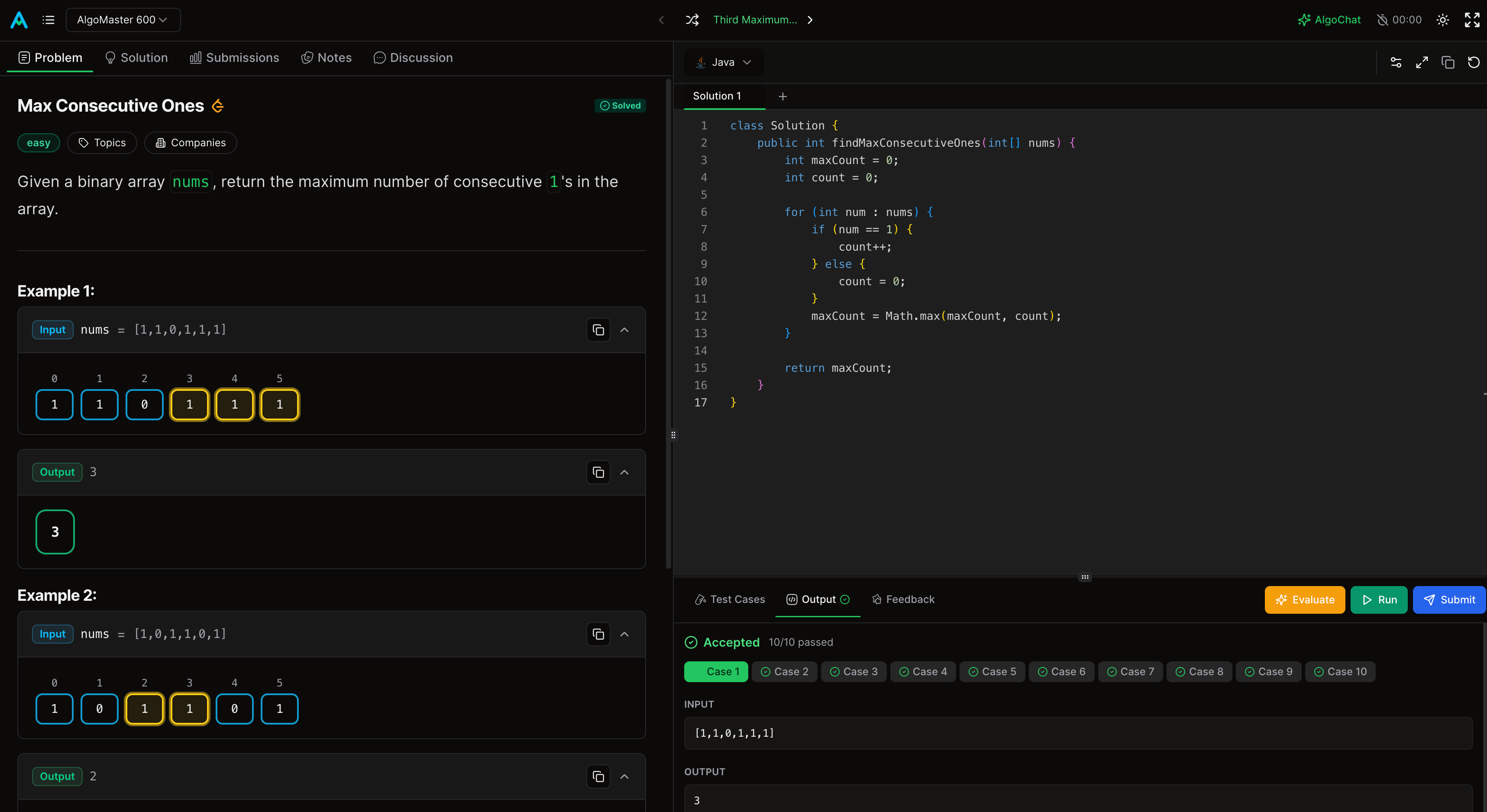 There’s also an Evaluate feature that reviews your solution, grades your code, and provides AI-driven feedback to help you improve.