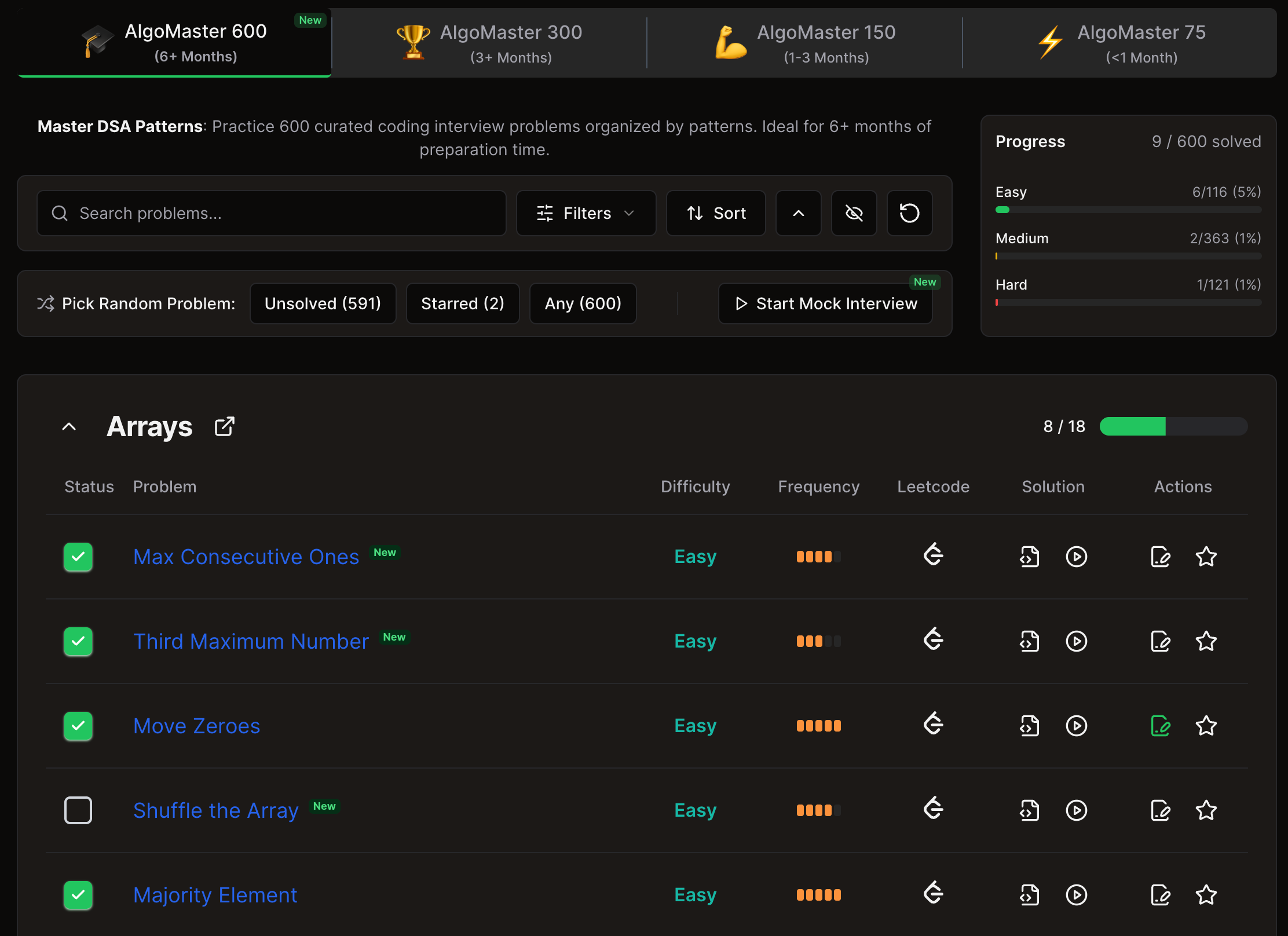 AlgoMaster 600: Added a new list with 300+ additional frequently asked problems covering most topics and patterns.
