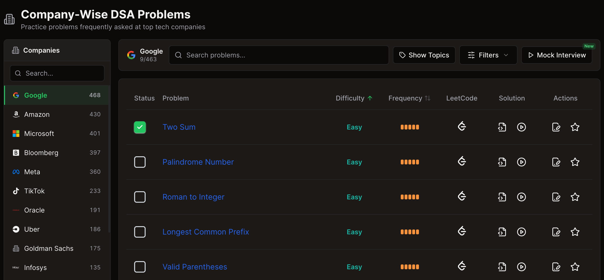 Introducing the company-wise practice page, where you can solve problems commonly asked by specific companies.
